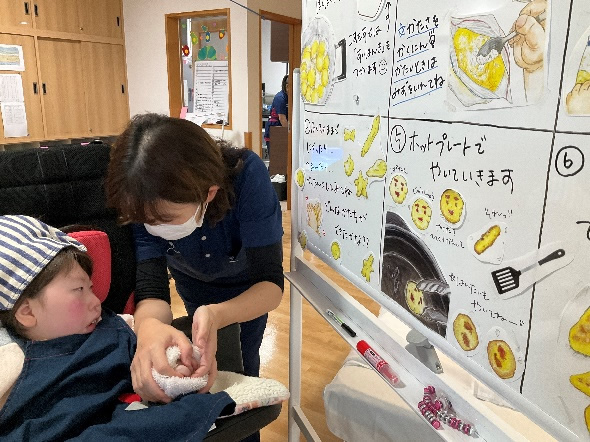そして「さつまいももちやけたかな」という絵本で作り方を勉強して