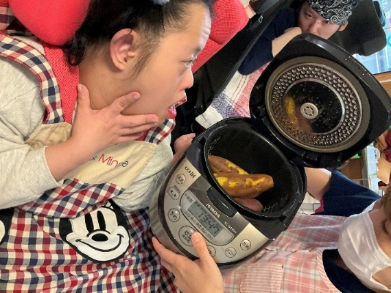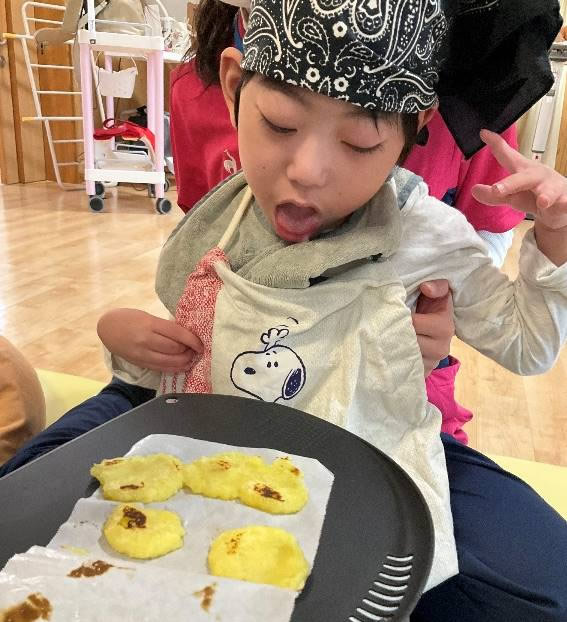 こすもすの畑で採れたさつまいもを使ってクッキングをしました。